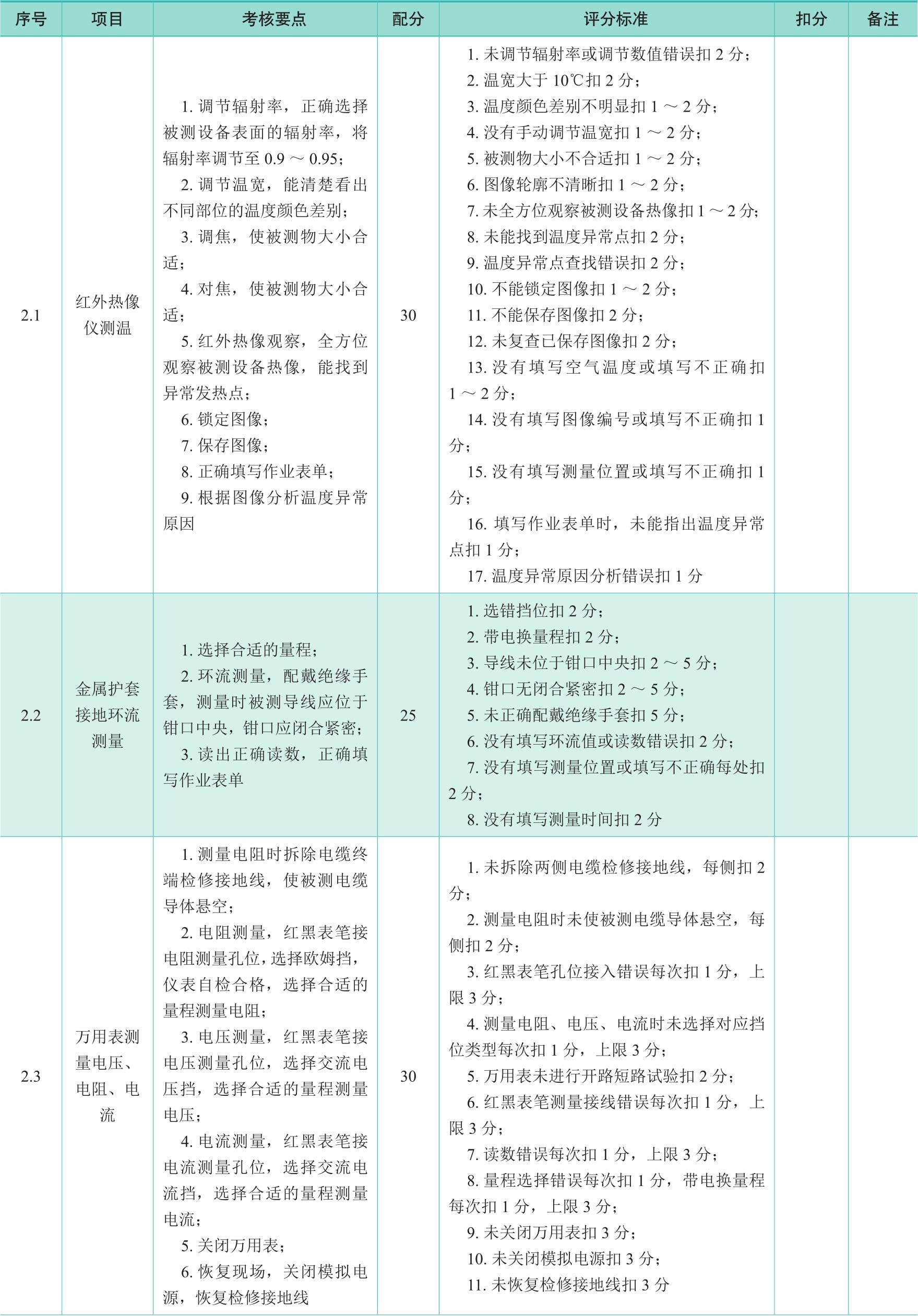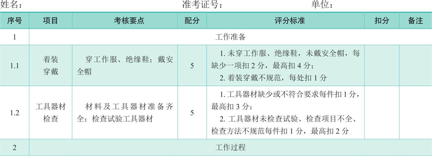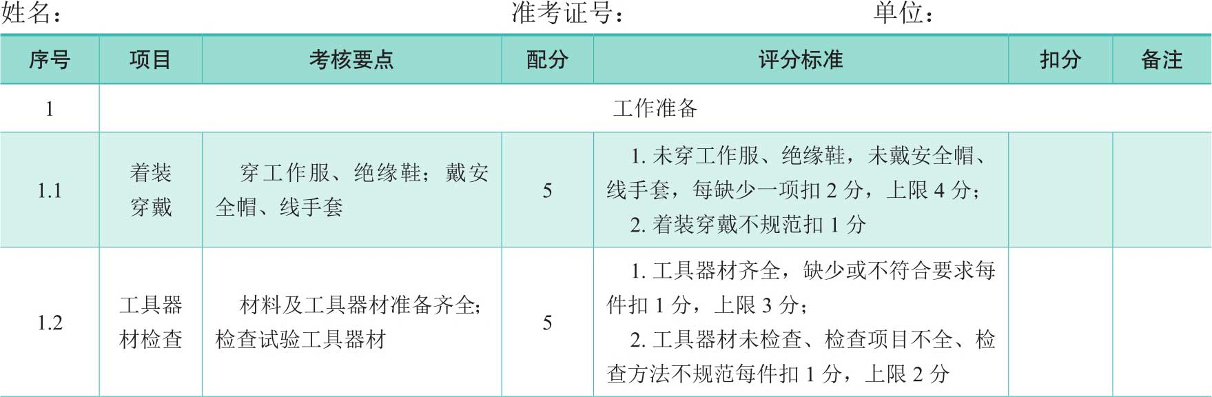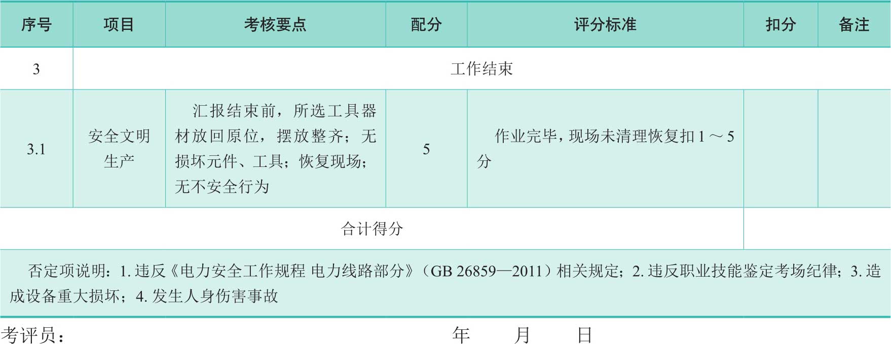 电缆缺陷检修考核评分记录表如表3-20所示。