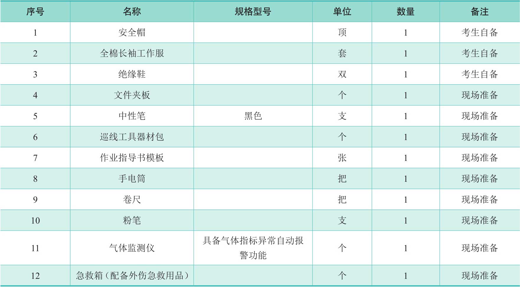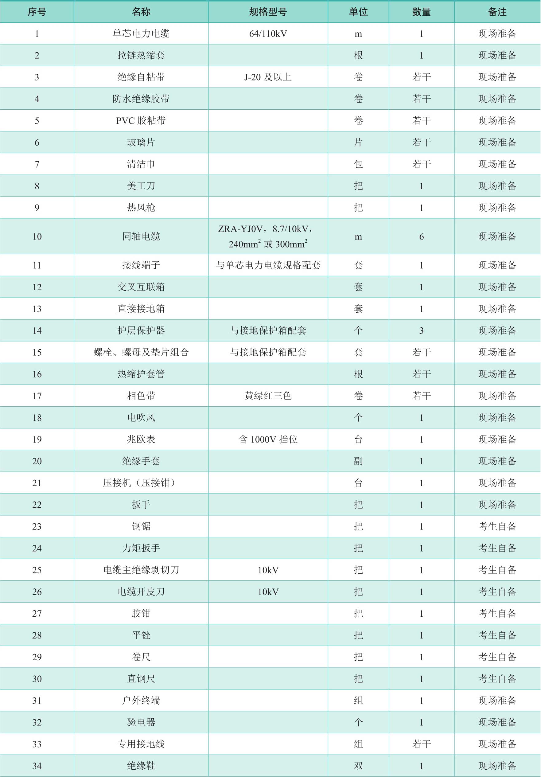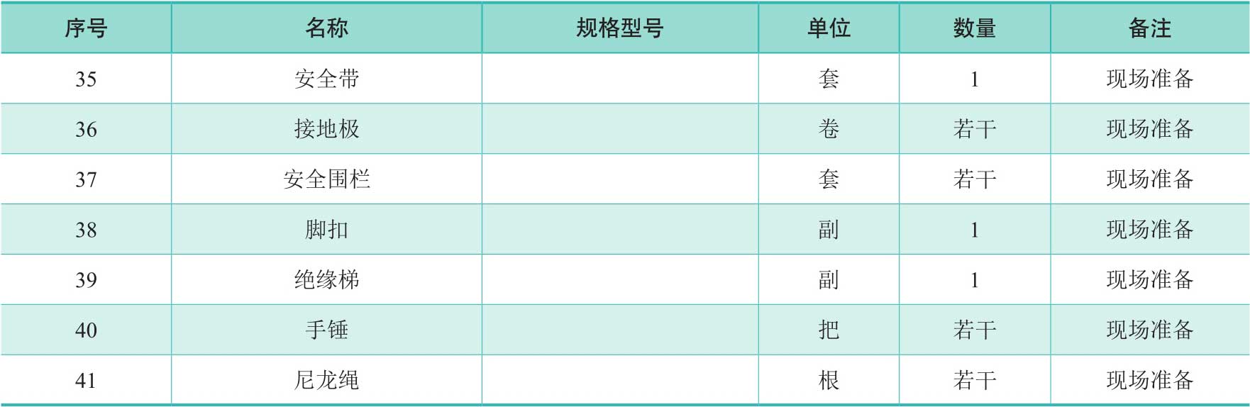 (2)工具器材及使用材料准备:对进场的仪器、工具器材进行检查,确保能正常使用,并整齐摆放,工具器材要求质量合格、安全可靠、数量满足需要。