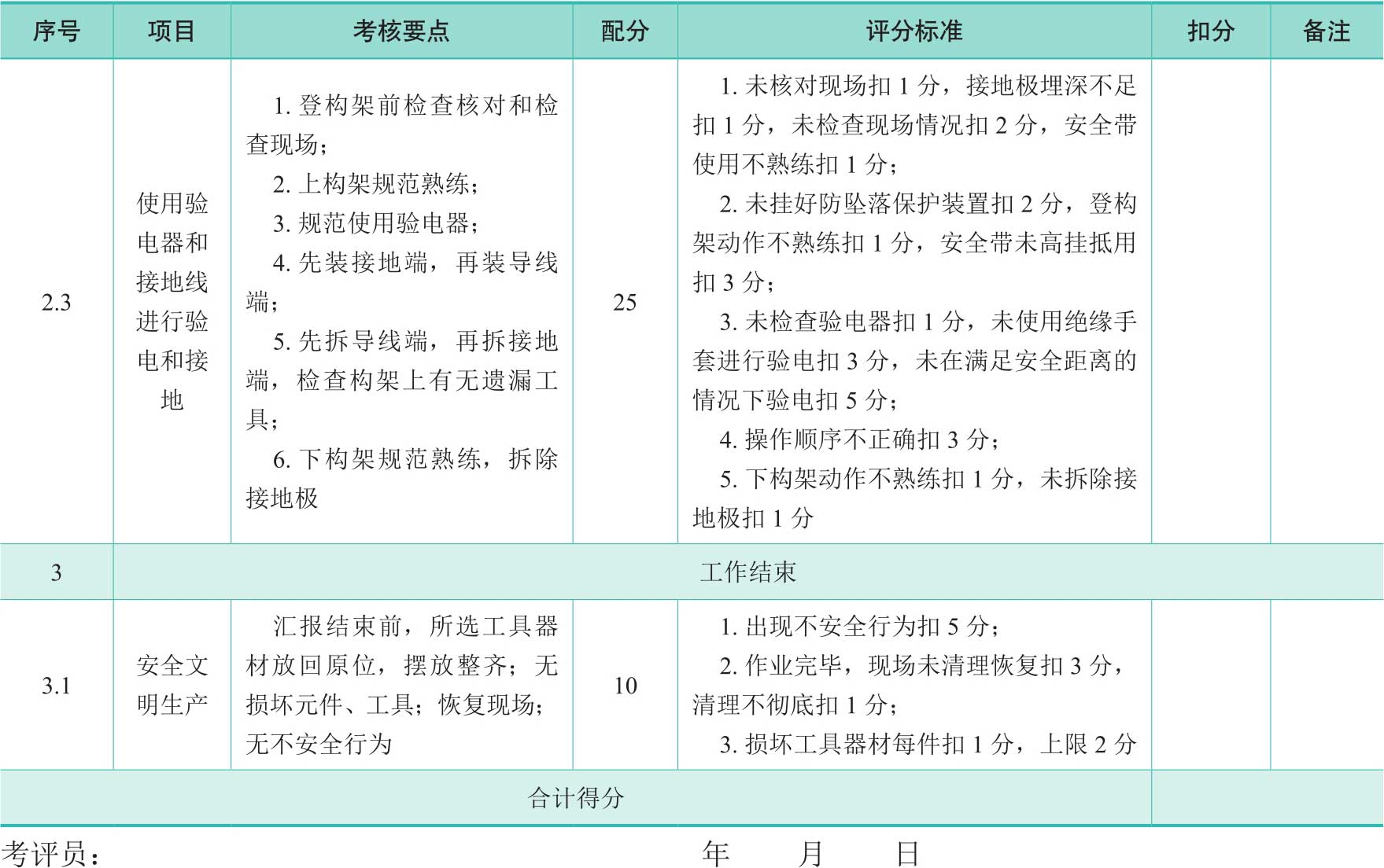 (3)了解未按规定验电和接地的危害;掌握使用验电器和接地线进行验电和接地的方法;掌握安全注意事项及工艺细节。