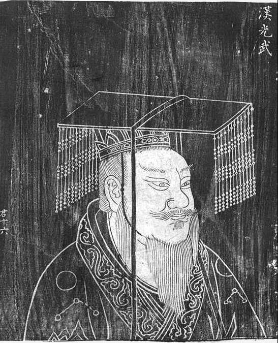 ▲刘秀(公元前 5—57 年),字文叔,东汉开国皇帝,汉高祖刘邦九世孙,25—57年在位。图为清代拓本《历代君臣图鉴》所载刘秀像。
