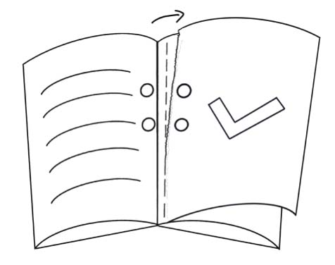 02 小心地沿页面根部的打孔线将页面撕下。为了保证沿虚线撕开,可以先沿打孔线折叠一下。注意:一次不要同时撕太多页。