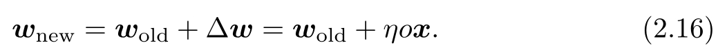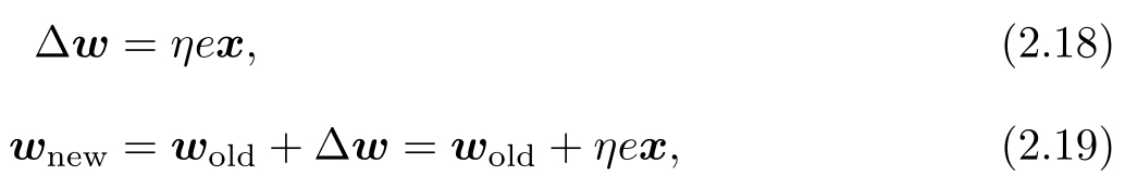 其中,比例系数 η 叫作学习率,决定学习的速度。 η 越大,权值改变得越快。