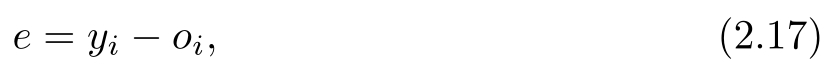 在基于误差的学习中,假设 y i 是期望输出, o i = f w · x i )是实际输出,则误差为: