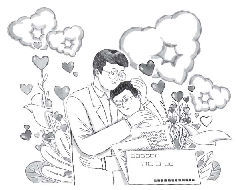 这次重新编班,我们班来了三个男老师,都跟我爸爸年龄差不多,我暗暗想选择一个心中的爸爸,可我又不知道哪个老师爱我。当我 40 分的试卷交上去时,只有您没有放弃我,不厌其烦地给我补课,星期天,还把我带回家去,师母给我做饭、买衣服。