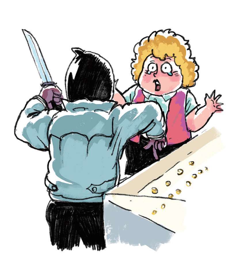 金店遭遇打劫,匪徒手持砍刀威胁一名女店员,让她往袋子里装金首饰。女店员吓坏了,手不停地抖,匪徒急得喊道:“胖女人,动作快点儿!”