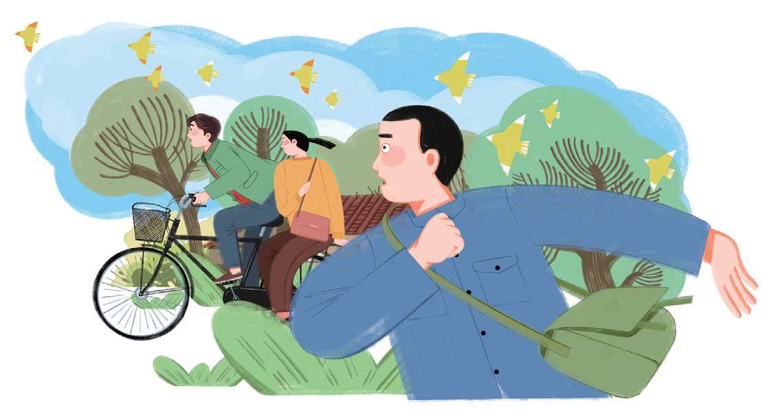 如果我的眼睛没看错,前面的路口上,大牙蹬着飞鸽牌自行车,驮着小巧玲珑的小满,一路冒烟朝远处而去。