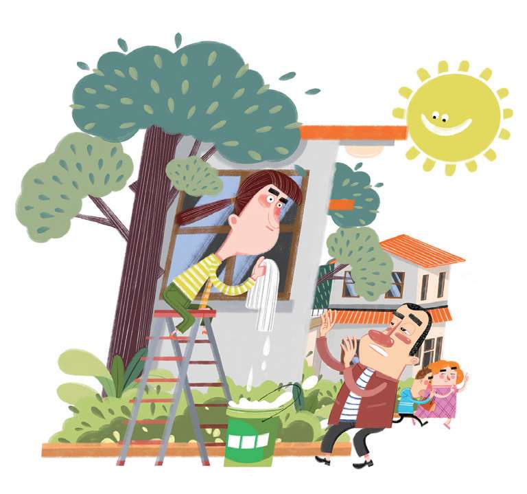 ◆ 我正骑在梯子上擦玻璃,不经意瞥见我爸和一男一女在说话,还时不时往我这边看。不一会儿,我爸回来对我痛心疾首地说:“傻闺女,快别擦了!刚刚那人看见没,那是李阿姨给你介绍的对象。人家说你爬那么高,跟个五大三粗的汉子似的,怕以后降不住你,没同意!”