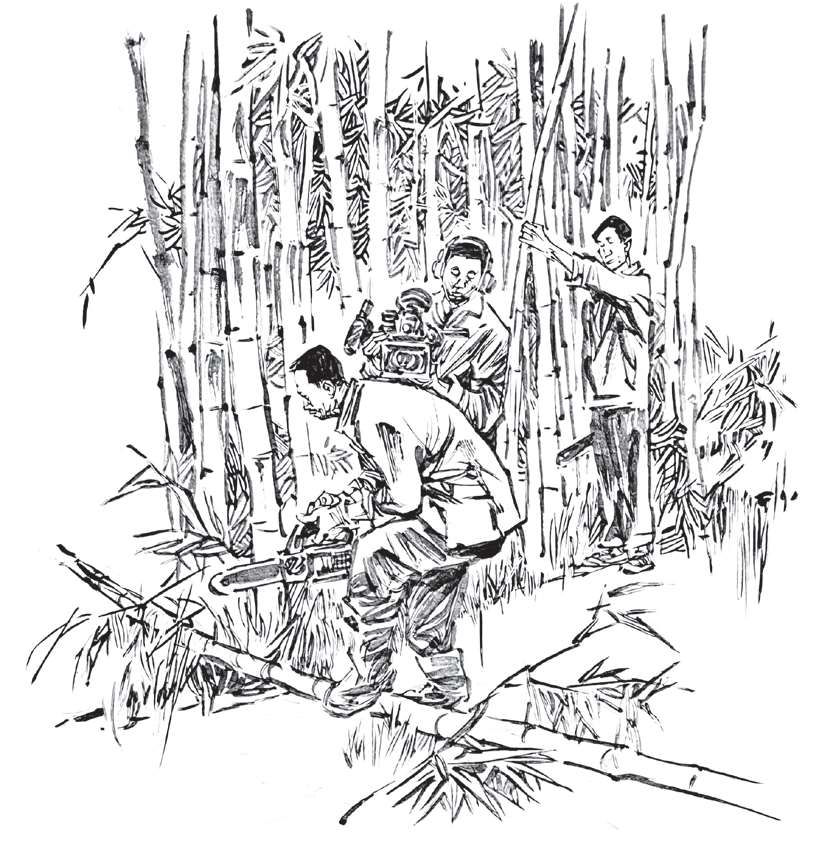 为了拍到好镜头,其中一个摄像师正蹲在竹林里拍摄,眼见着竹子像利剑刺来,他吓得转身要逃,不料被一截儿锋利的竹子断面扎穿了脚面,鲜血直流,疼得无法动弹。