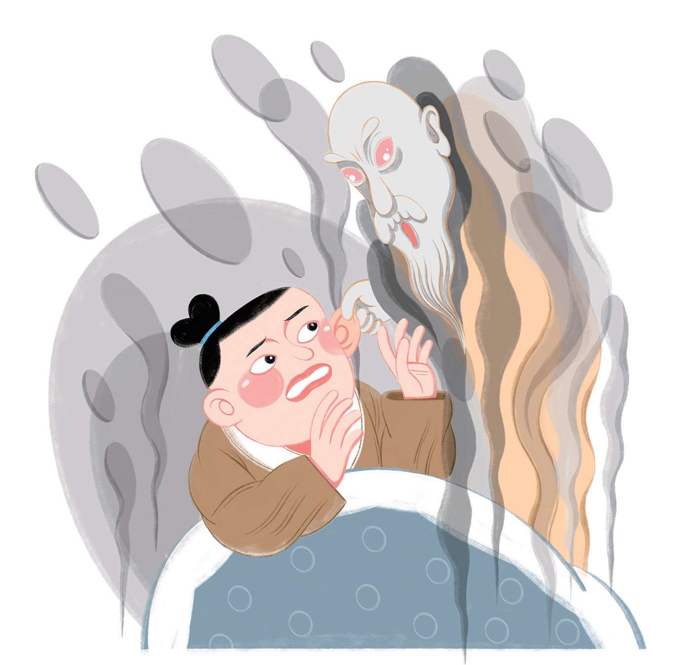 李旺正要赌咒发誓,阎王忽然把黑白无常叫到身边低声交代了几句,俩鬼随即出了大殿,不一会儿领了个老鬼回来。那老鬼走路一瘸一拐的,面容阴森恐怖。阎王问黑白无常:“怎么带他来了?”