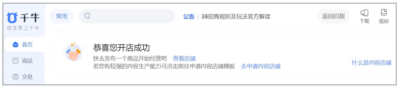 完成以上操作后,商家即可成功创建一个淘宝个人店铺。后续商家可以通过“千牛卖家中心”对淘宝店铺进行管理,发布和推广商品。