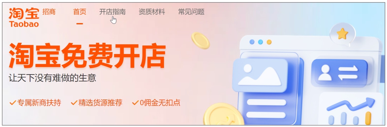 系统自动跳转至“淘宝招商”页面,然后点击“开店指南”按钮,如图2-2所示。