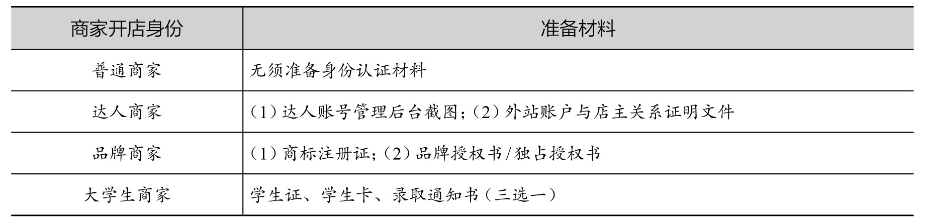 表2-3 商家身份认证相关材料(非必备)