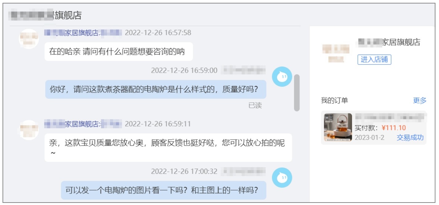 图2-7 某客户与商家的淘宝旺旺聊天界面
