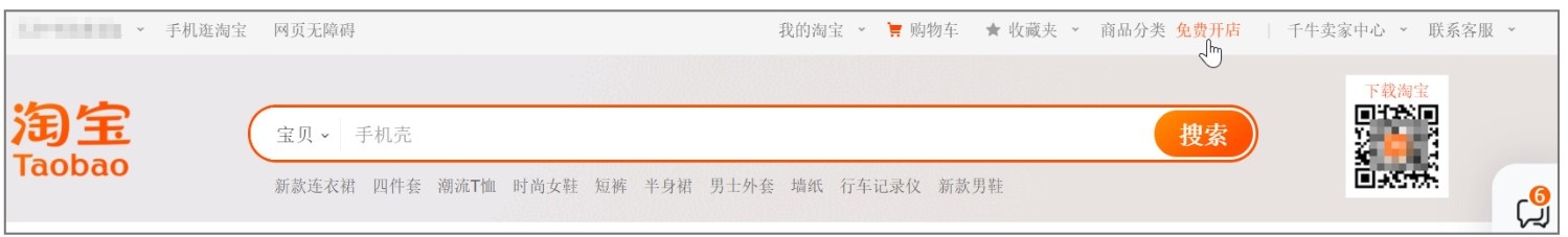 商家在开店之前,可以先通过电商平台的官方网站查询开店和入驻的相关流程。以淘宝平台为例,商家可以在淘宝首页点击右上角的“免费开店”按钮,如图2-1所示。