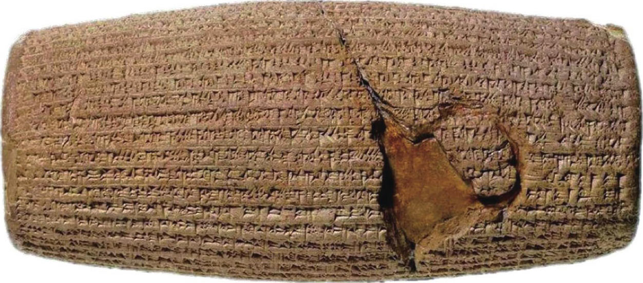 图九 居鲁士黏土圆柱,伊朗国家考古博物馆藏复制品