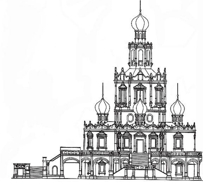 图1-31 П. 波塔波夫:莫斯科的菲里圣母节教堂设计图