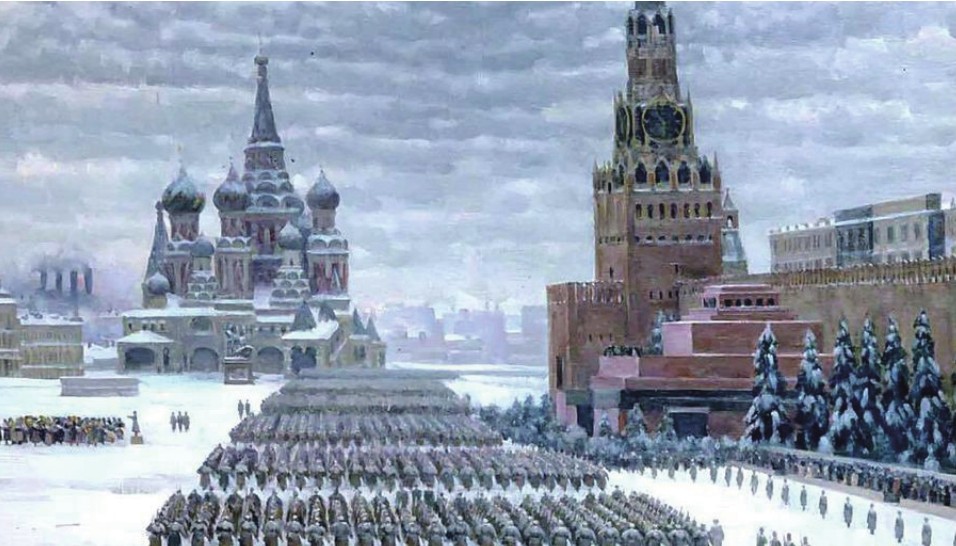 图2-8 К. 尤恩:《1941年11月7日的红场阅兵》(1942)