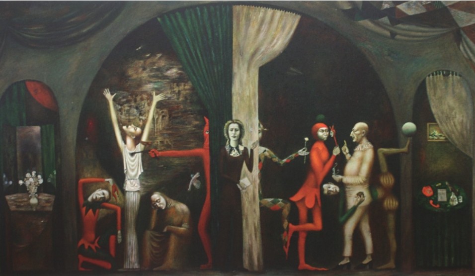 50–70年代,随着苏维埃社会出现的“解冻”思潮,先锋派绘画艺术回归俄罗斯。А.斯莫林和П. 斯莫林兄弟、П. 尼科诺夫、M. 尼科诺夫、Г. 科尔热夫、Т. 萨拉霍夫、Г. 纳里曼别科夫、H.安德罗诺夫、B. 波普科夫、И. 扎林等画家深信绘画艺术的崇高使命和道德理想,力求表现独立的艺术个性和创作的自我选择,他们既恪守职业的真诚,又敢于突破“固定模式”和传统,进行绘画艺术的多样化探索。出现了А. 斯莫林和П. 斯莫林兄弟的《极地勘测人员》(1961)、《罢工》(1964),П. 尼科诺夫的《我们的日常生活》(1960)、《地质队员》(1962)、《十月的大本营》(1965),M. 尼科诺夫的《渔夫》(1967),Г. 科尔热夫的《共产党人》(1957–1960)、《战火烧伤的人们》(1962–1967),B. 波普科夫的《布拉茨克水电站的建设者》(1960)、《工作队在休息》(1965)、《回忆。寡妇们……》(1966)、《两人》(1966)、《我的一天》(1968)、《七月的夏天》(1969)、《父亲的军大衣》(1972),Т.萨拉霍夫的《修理工》(1960),H.安德罗诺夫的 《木排工人》(1962,图2-10) 等一大批画作。这些画作反对粉饰现实和对现实的理想化,无论在人物塑造,还是绘画技法上都与传统的俄罗斯绘画有所不同,表现了这些画家对教条的、浮夸的绘画艺术的反叛。这些画家的创作引起一些传统现实主义画家和评论家的强烈不满,他们被指责为脱离现实,搞形式主义,等等。然而,这些画家的绘画语言严峻、色彩简单、形式率直、结构简练是对传统绘画艺术探索的扩展和补充,给俄罗斯绘画界送来一股新风,迎来了绘画界的变革,这是社会的“解冻”思潮带来的结果。但是,随着60年代中期官方的文化“封冻”,许多画家不得不转入“地下”或流亡国外。 70–80年代,А. 普拉斯托夫、Д. 莫恰里斯基等老一辈画家“老骥伏枥”,继续在现实主义的绘画领域完善自己的技巧,创作了一批描绘当代生活的作品,如А. 普拉斯托夫的《小阳秋》(1970–1971)、《往事回忆》(1970),Д. 莫恰里斯基的《在俱乐部的彩排》(1972)、《三位函授生》(1978)等画作;同时,И. 格拉祖诺夫、H.涅斯杰罗娃、O. 布尔加科娃、Т. 纳扎连科等新一代画家进入创作的成熟时期。在И. 格拉祖诺夫的《20世纪的神秘剧》(1972),H.涅斯杰罗娃的《欢迎联欢节的客人》(1974)、《年轻人在休息》(1976)、《地铁》(1980),O. 布尔加科娃的 《剧院,女演员А. 涅耶洛娃》(1975,图2-11) 、《小丑和球》(1978)、《果戈理》(1979)、《年轻的艺术家》(1981),Т. 纳扎连科的 《民意党人临刑》(1972,图2-12) 、《色丹岛上的雾日》(1980)、《普加乔夫》(1980),K. 涅契泰罗的《弟弟复员归来》(1976)、《动物市场》(1970–1980)、《革命的回忆》(1980)以及许多其他画家的画作 里,可以明显地感觉到他们对各种绘画艺术传统进行了创造性的再思考,以各自的方式解决绘画创作的诸问题并且用新的内容和形式表现出来。