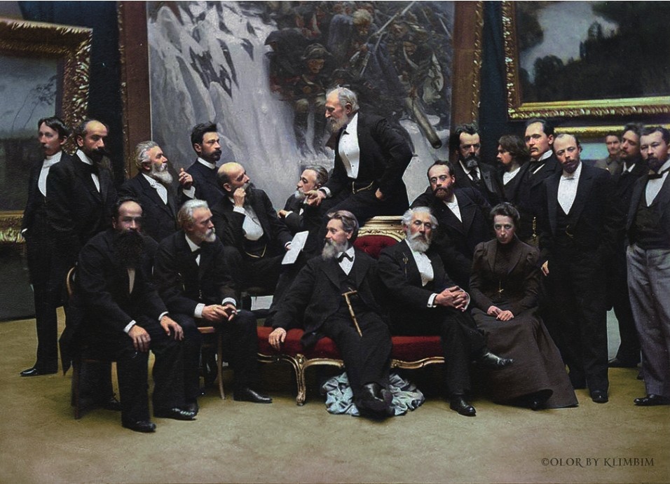 19世纪下半叶, “巡回展览派”(1870,图2-1) 的出现是俄罗斯绘画发展的一个重要现象和里程碑。1870年,根据И. 克拉姆斯柯伊、Н. 格、В.佩罗夫和Г. 米亚索耶多夫等画家的倡议,“巡回展览派”这个具有民主主义思想倾向的现实主义画家联盟 成立了。1871年11月27日,巡回展览派画家在彼得堡举行了首次画展,之后巡回展览派画展 每年都举办一次,展览遍及彼得堡、莫斯科、基辅、哈尔科夫、喀山、奥廖尔、里加、敖德萨等城市。巡回展览派画家们不仅展出自己的绘画作品,而且把巡回展览当作一种教育手段,在大众中间宣传和普及现实主义绘画艺术。