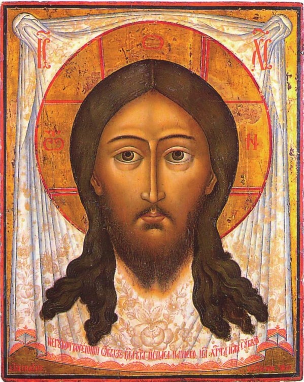 (1658)是乌萨科夫的一幅著名的圣像画,也是流传至今最早的一幅救主像。基督的面孔端庄,符合人体解剖比例。他的头发经过精心梳理,两卷头发稍显蓬松,对称地落在脸的两侧。一圈金色光环准确地勾出基督的头部轮廓。基督的目光稍瞥向一边,他的神情自然、平静,还有点超脱,显示出他内在的力量,也突出了他的人性的肉体本质而非神性特征,让人觉得容易接近。