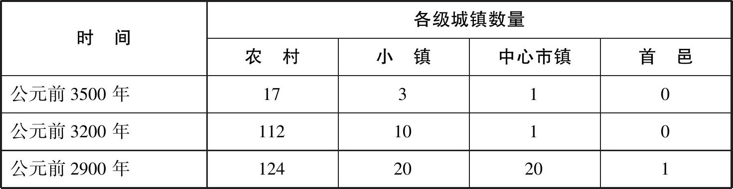 资料来源:Robert McC.Adams and Hans J.Nissen, The Uruk Countryside。参见朱龙华:《世界历史》(上古部分),北京大学出版社,1991年。