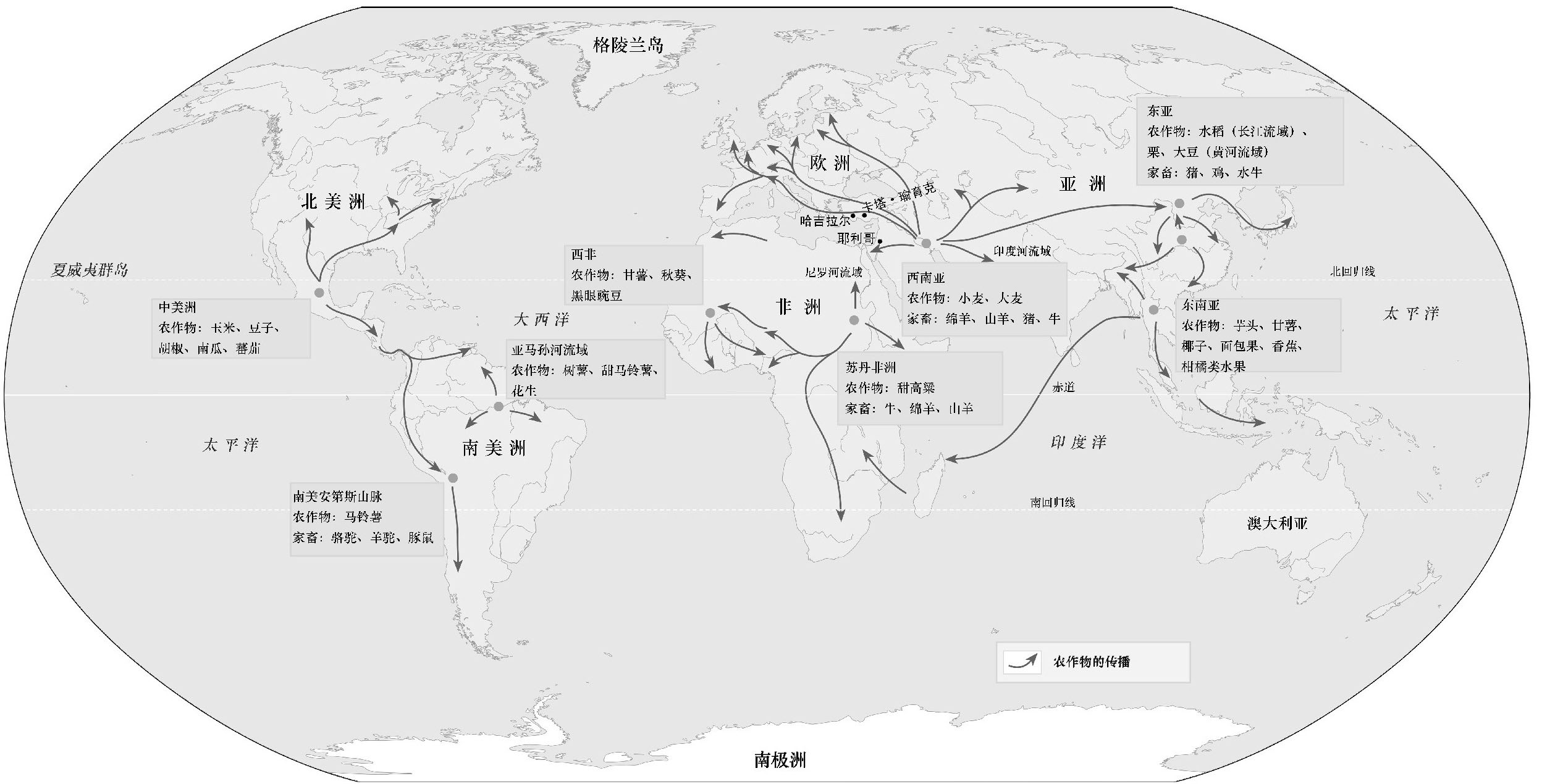 不过,对于什么野生植物可以栽培,什么野生动物可以饲养,人类是有一个认识过程的。人类学家在巴勒斯坦纳吐夫遗址中发现的谷物遗存都是大麦、小麦之类的野生品种,而发现的农具如石镰、磨盘和臼、杵等都是用于收割的,说明当时人类虽然还未真正开始其作物种植,但已把可供选择的植物食品来源集中到某些野生品种上。无独有偶,在肉类食品来源的选择上也出现了类似的情况,在属于纳吐夫文化的贝哈遗址中,野山羊骨几乎占了全部兽骨的76%,说明当时人类的狩猎活动已把目光集中于某些野生动物。它表明,农业革命并不是突然到来的,人类对作物和动物品种有一个认识和选择过程,这个过程即农业和畜牧业发生的过程。据测定,上述纳吐夫文化存在的时间,从公元前1万年持续到公元前8000年,是目前发现的与农业和畜牧业起源有关的最早遗址。可见,农业文明的首发之地是在西亚。