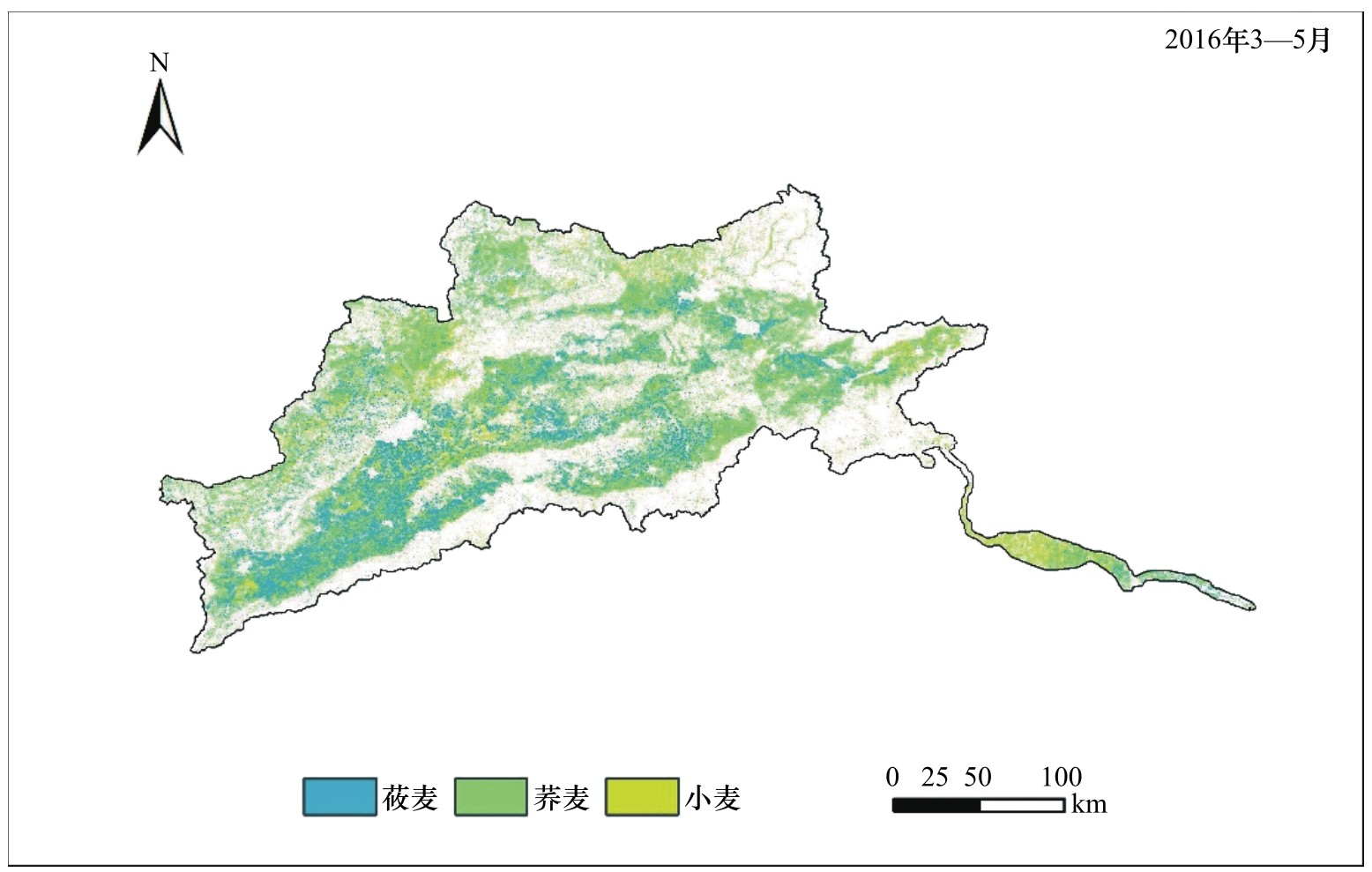 图4-9 2016年永定河流域3—5月农作物种植结构信息提取结果