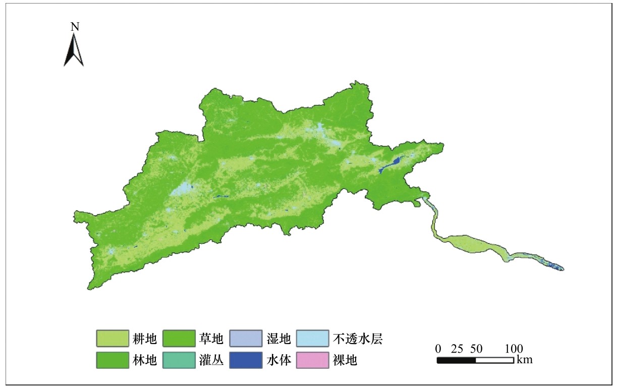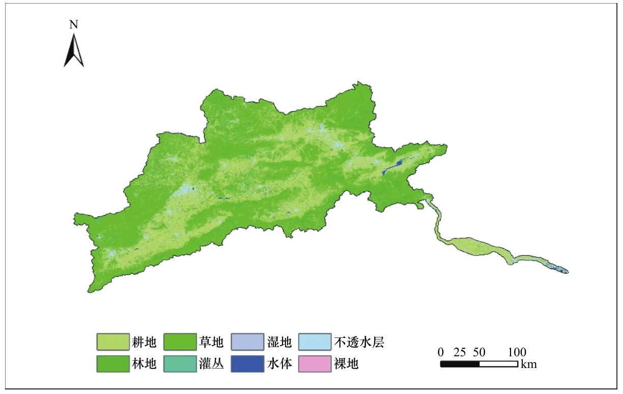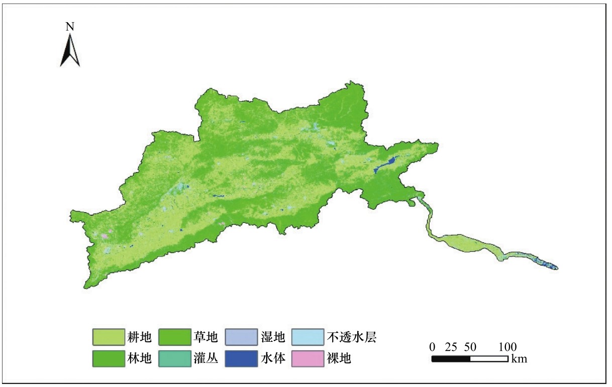 土地覆被信息提取方面,选用国产高分系列GF-1和GF-6卫星2014年、2016年和2019年影像为主要数据源。同时,以永定河流域边界矢量数据和已有地表覆盖产品作为辅助数据。