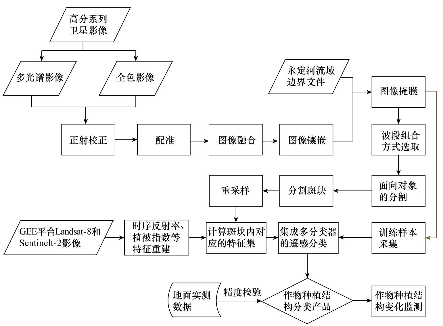图4-4 永定河流域农作物种植结构信息提取及变化监测技术流程