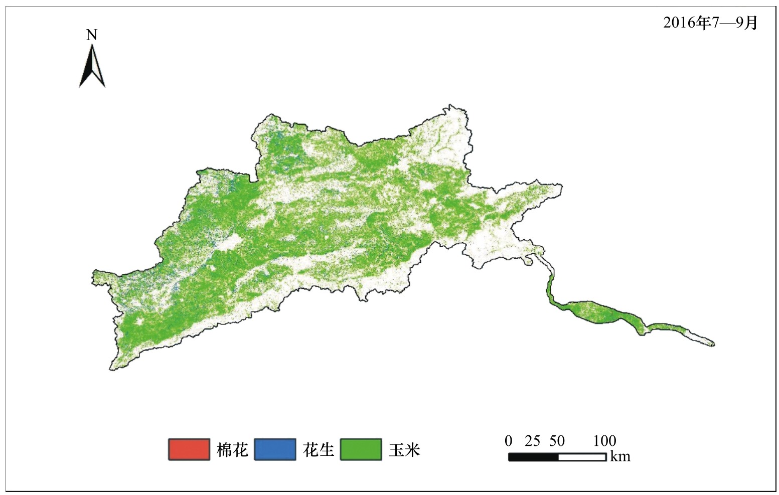 图4-12 2016年永定河流域7—9月农作物种植结构信息提取结果