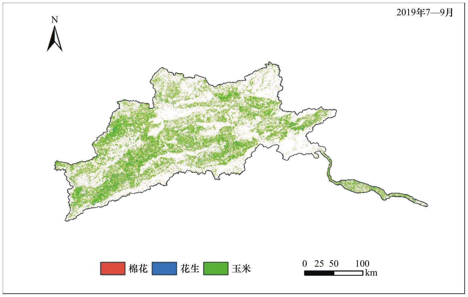 图4-13 2019年永定河流域7—9月农作物种植结构信息提取结果