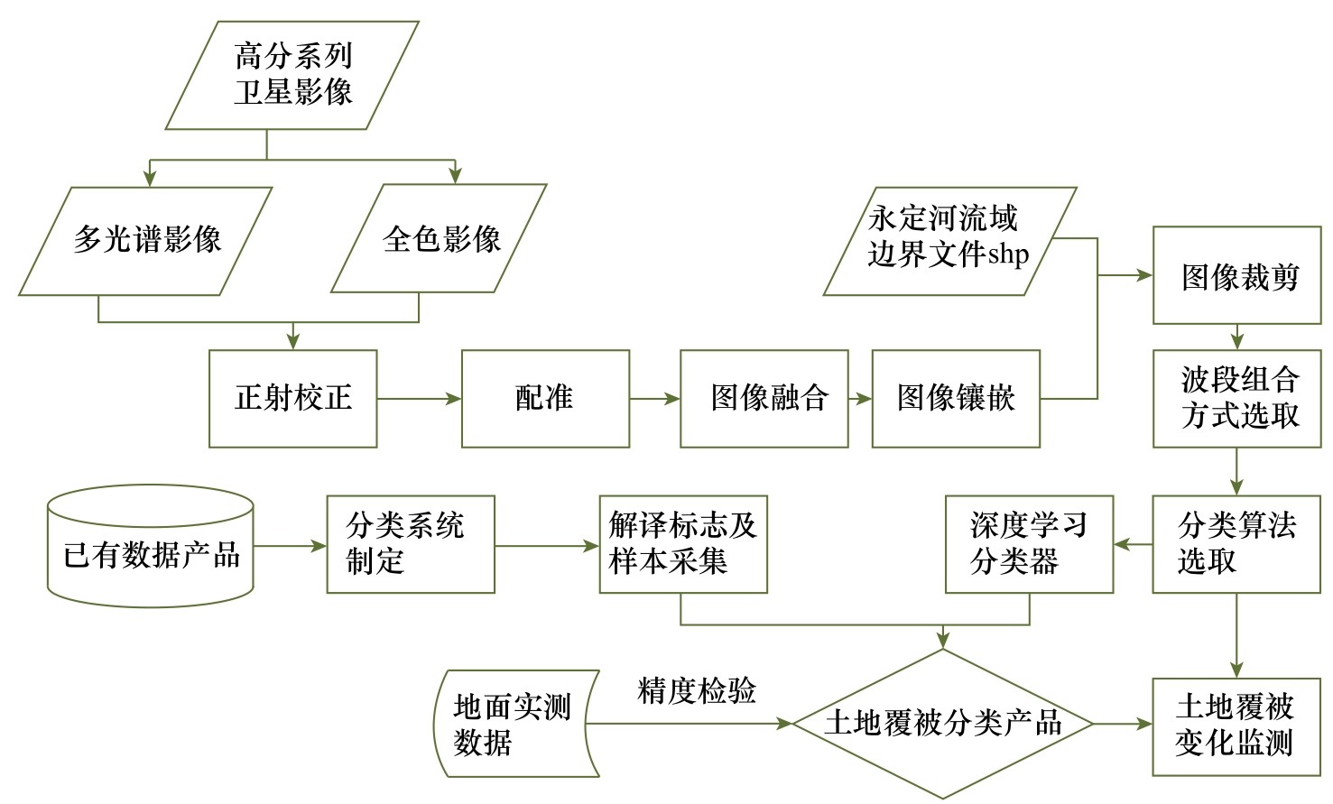 图4-3 永定河流域土地覆被信息提取及分类技术流程