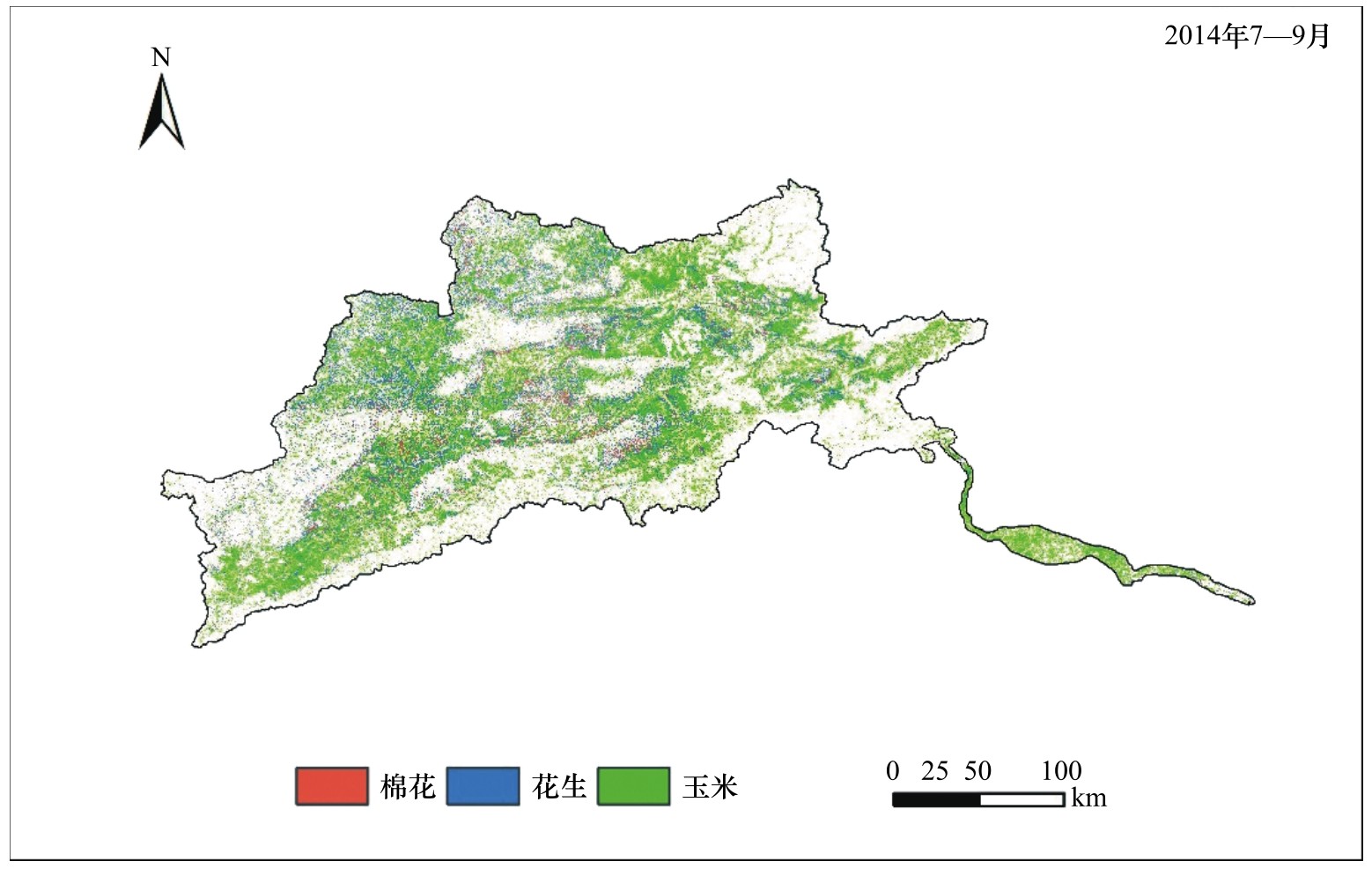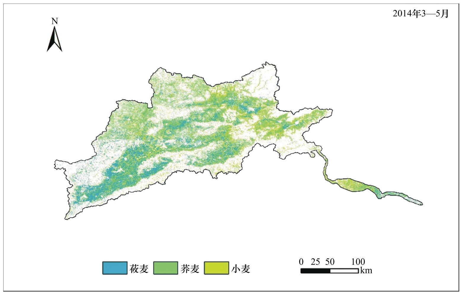 图4-8 2014年永定河流域3—5月农作物种植结构信息提取结果