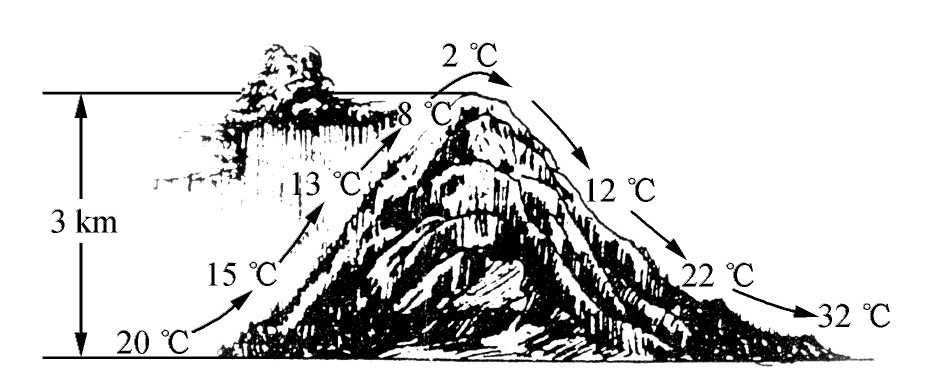 第二,随高度上升温度下降,如降水下降不明显,垂直气候类型变化多以低纬度向高纬度的森林植被型所代表的气候类型变化;如降水下降明显,则垂直气候类型变化多以沿海向内陆的干旱方向所代表的植被型气候变化。