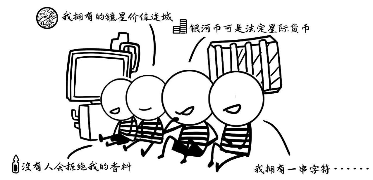 第三个囚犯的财富是银河币,有点像布雷顿森林体系构建之后的美元,它的稀缺性没有机制来进行限制,安全性也是一种虚伪的安全性,因为控制者可以随时稀释它。