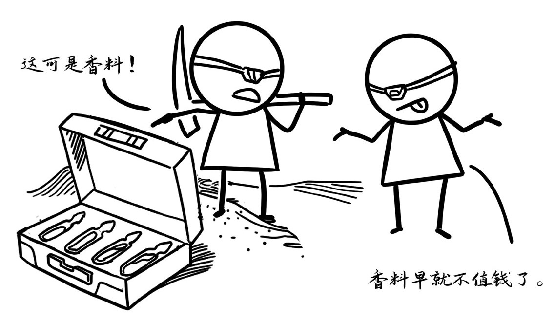 第一份财富是囚犯之一哈克南隐藏的“香料”,他来自厄拉科斯的沙漠星球,入狱之前他将所有钱财都用来买了“香料”。“香料”是星际旅行必不可少的原料,是让生物获得超能力的资源,还能抑制衰老,曾是整个宇宙最昂贵的资源。然而随着开采技术的进步,现在“香料”已经不怎么值钱,哈克南费尽心思将自己购买的香料从山洞里挖出来后(当地土著也偷走了不少),却没有一个航行家愿意收购,当哈克南给出报价之后,他们像打量小丑一样看着他,觉得哈克南不是骗子,而是个傻子。