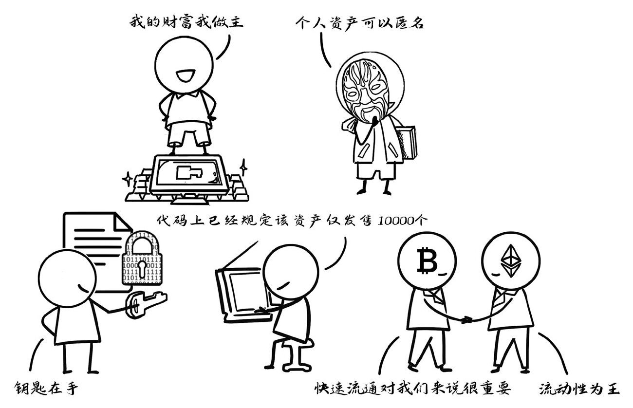 在元资产的获取、分配及安全保障过程中,通过去中心化的方式,解决信用成本问题;通过点对点的交易,无须第三方信用背书,减少摩擦成本,提升安全保障,更透明地保护个人资产。
