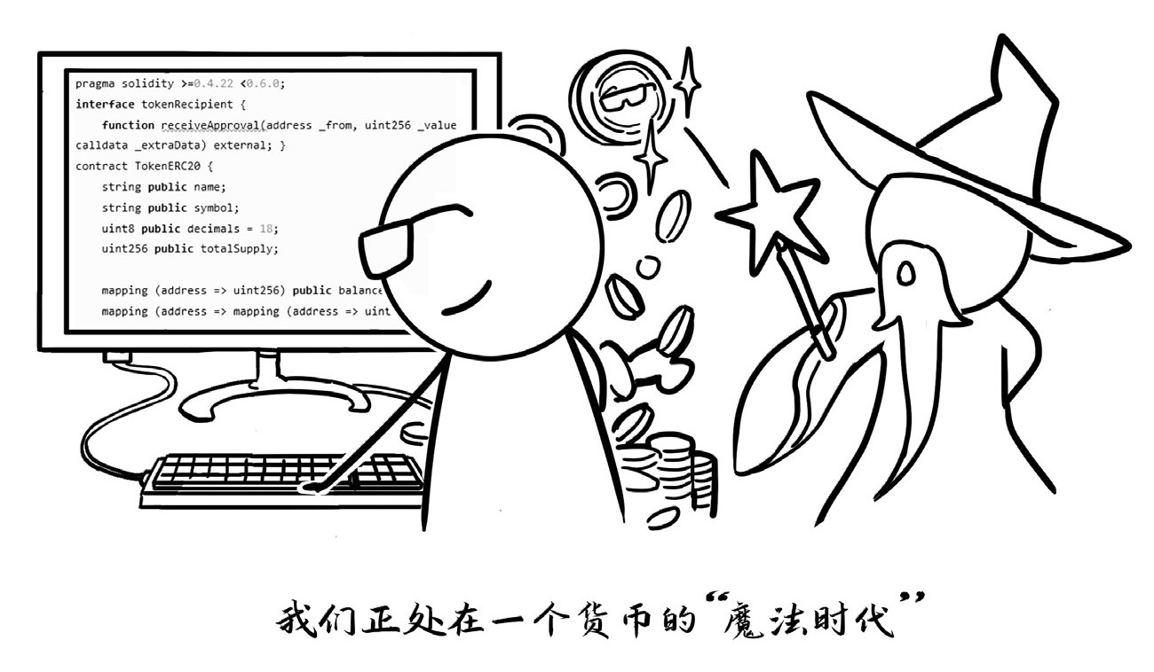 发行自己的货币在过去是无法想象的,在传统认知中,只有主权国家才拥有发行货币的权力,而在货币的“魔法时代”,每个人都可以通过类似以太坊的渠道发行自己的货币。你只需要懂得相关技术,就可以掌控发行货币的“魔法”,去实现自己发行货币的梦想,拥有烙着个人印记的货币。