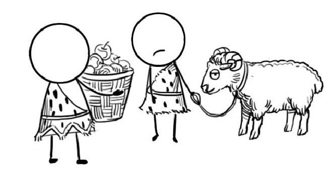 在人类原始时期,由于生产力低下,生产资料十分简单,如果一个人想要得到另一个人的东西,他会采用“物物交换”的直接贸易方式。打个比方,我养了一只羊,但我想吃苹果;你刚好种了一棵苹果树,我就用一只羊去换你的100个苹果。这是人类社会原始时期“以物易物”的体现。