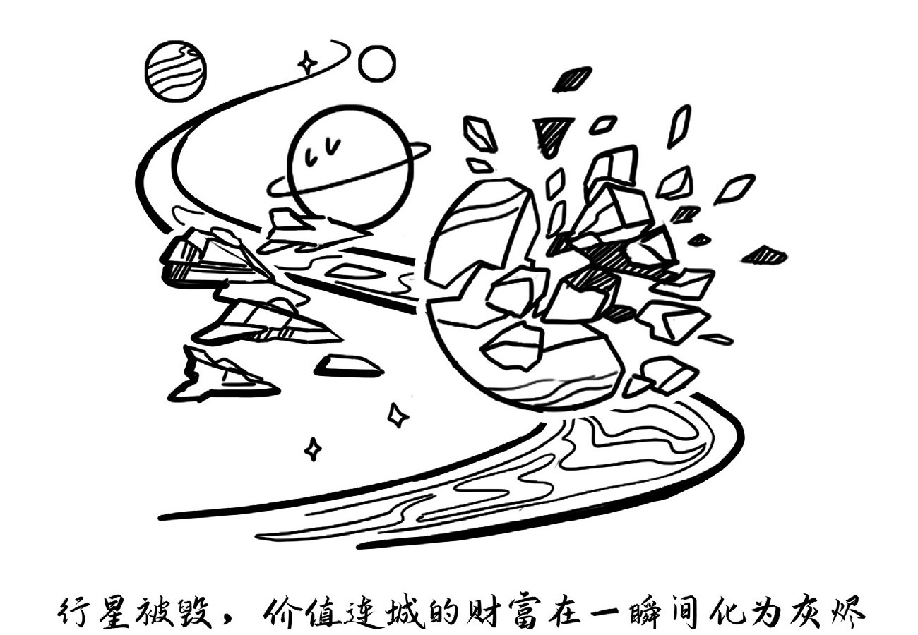 第二份财富是囚犯之二白格尔隐藏的“镱星”,他在号称永恒的中立星南十字座M31主星附近购买了这颗昂贵的银白色行星,这颗行星上有完整的生态和数千万生命,这颗行星上的人每年从原料镱中提炼出来的量子算力,有10%是要交给他这位所有者的。然而在天蝎座和人马座的战争中,人马座联军在宇宙中修建了一条星际高速路,这直接导致了这颗碍事的星球被炸毁,面对强大的军事力量,号称永恒中立的星球高层没有谁敢说半个不字,白格尔一生的财富在0.001秒内化为灰烬。