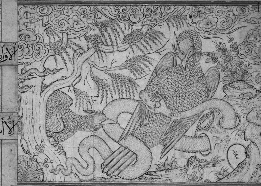 图35 《雉鸡降蛇图》,Emîr Devletyâr,雅库布册页,TSM H.2153, fol.84b。