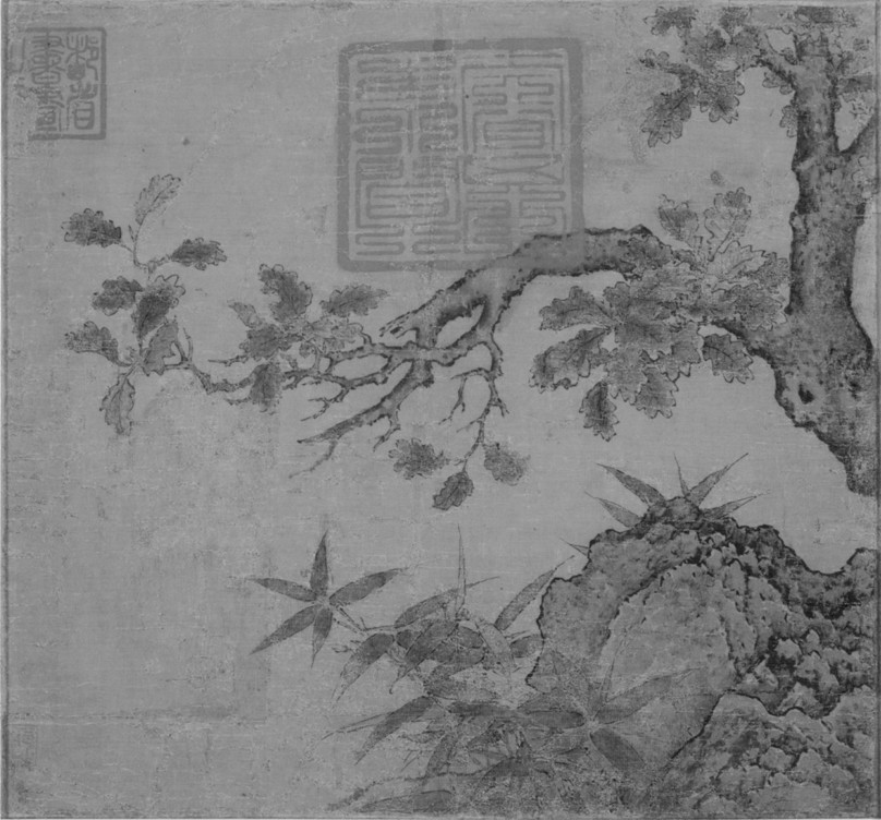 图10 《古木竹石图斗方》,相传为李迪作,24.2×25.7 cm,12世纪,波士顿美术馆藏:BMFA 17.186。