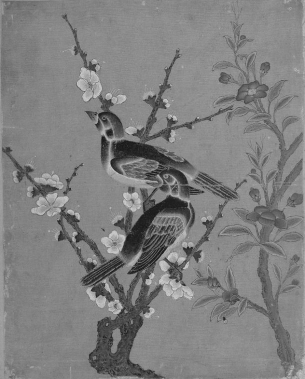 图16 工笔花鸟画《喜上眉梢》临摹练习作品,绢本设色,30.5×24.5 cm, TSM H.2153, fol.156a。