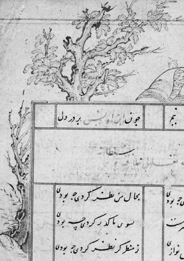 图1 贝赫拉姆·米尔扎册页的黑笔画,TSM H.2154, fol.55b。