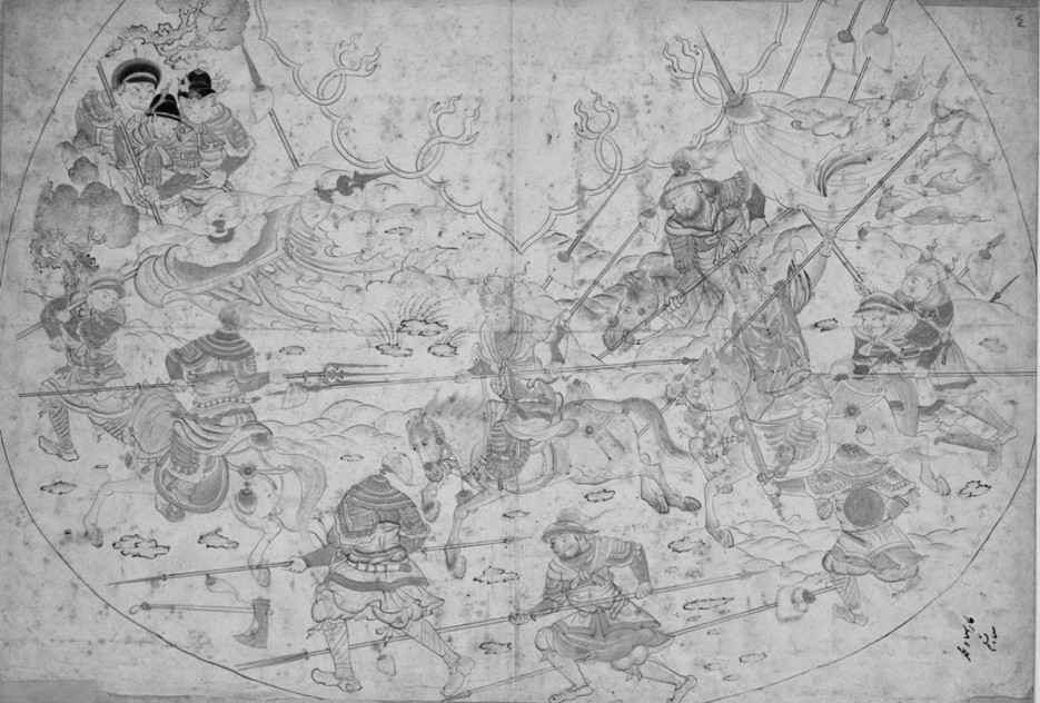 图24 《三国志》战斗场景,33.16×48.85 cm,雅库布册页,TSM H.2153, fol.77a。