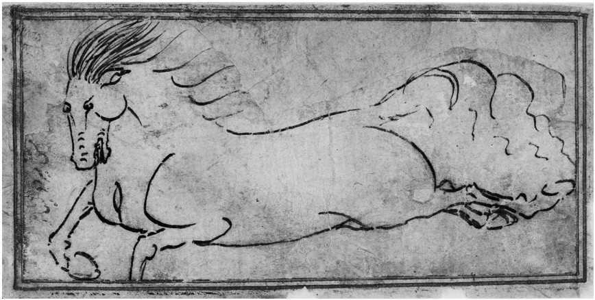 图3 苏丹艾哈迈德·贾拉伊尔所绘白马头像,14世纪绘于现伊朗或伊拉克, TSM H.2153, y.29b。