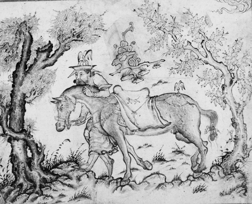 本文所研究的黑笔画案例主要出自14世纪上半叶至15世纪上半叶的百年间的贾拉伊尔王朝、帖木儿帝国,以及白羊土库曼王朝的宫廷画师之手。这些艺术家和他们的徒弟在黑笔画的创作上或多或少受到了中国绘画、刻版书籍插图和瓷器图案的影响。尽管16世纪后,伊斯兰世界的画坛没有再出现完全模仿中国画的习作,但中国白描笔墨技法和素雅的审美偏好仍作为一股清流,在金碧辉煌的伊斯兰美术史中以新的面貌流行于萨法维与奥斯曼的宫廷画坊间。