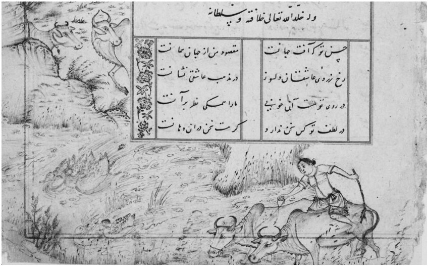 图6 《鸭川牧野》(页缘装饰),29.5×20.4 cm, 14世纪末绘于现伊朗或伊拉克, WFGA, F1932.30, fol.17a。