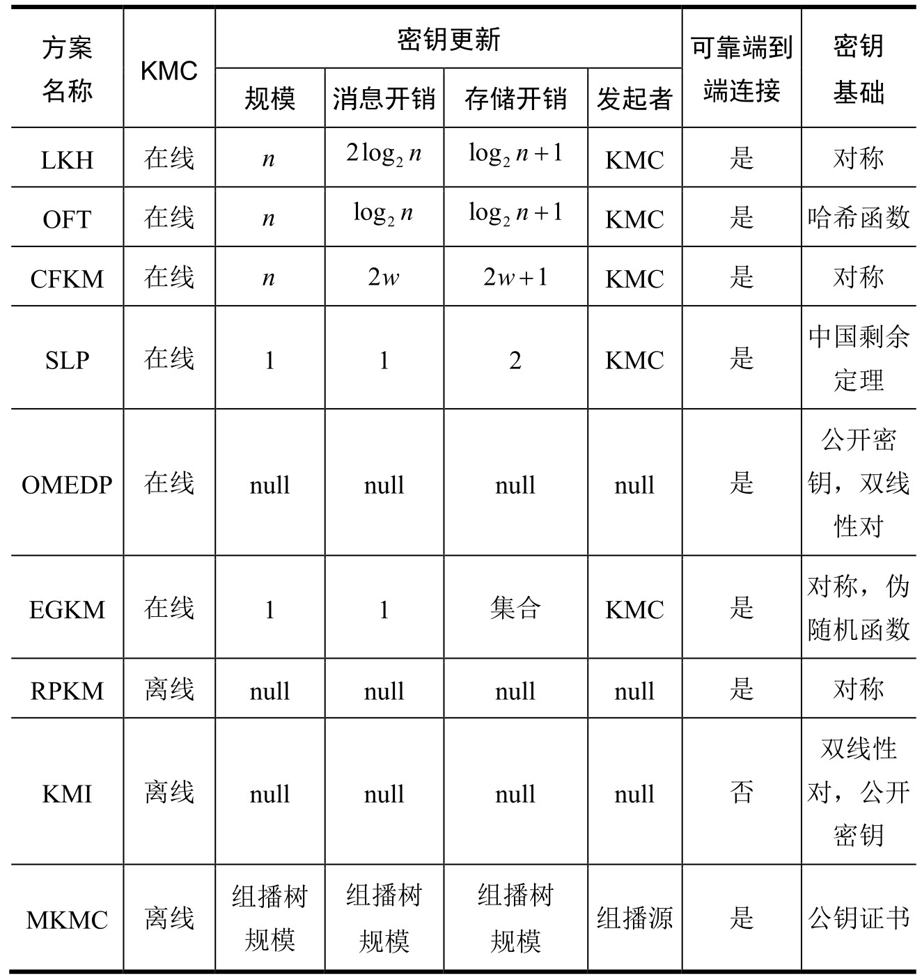 表2-5 非集中式密钥管理方案的安全性和效率对比