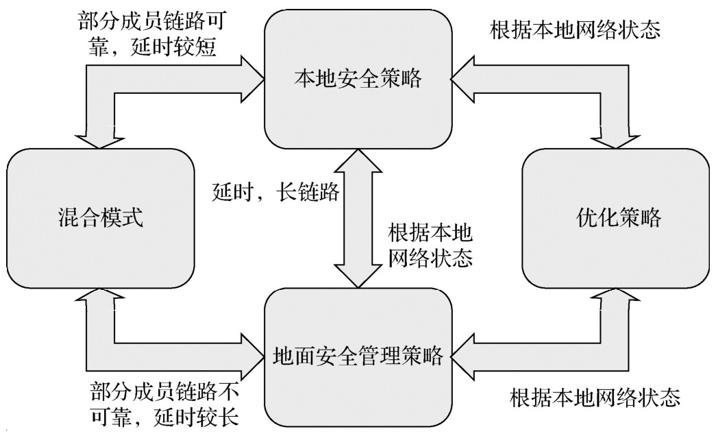 在基于本地节点的密钥管理模式中,网络成员具有比集中式密钥管理方案中成员更强的能力,能够承担基于KMC密钥管理模式中面向自身的密钥管理任务。网络成员可根据效率和本地上下文情景选择两种模式中的一种,或者采用混合模式,并能执行优化策略,具有更好的性能,如图3-1所示。